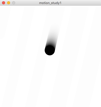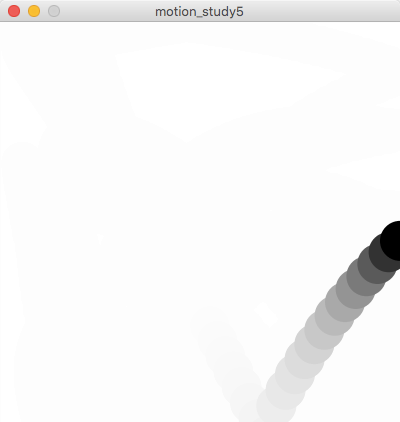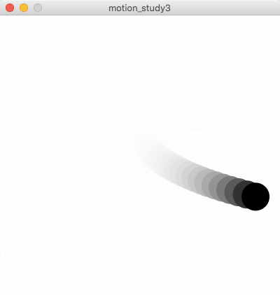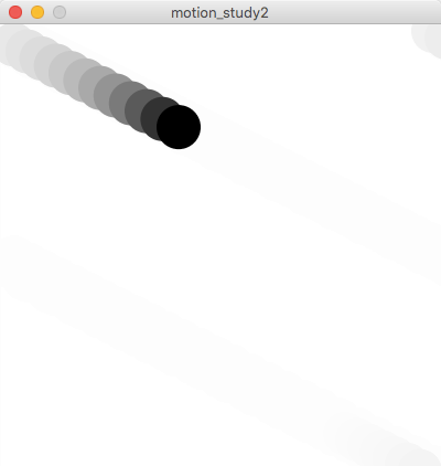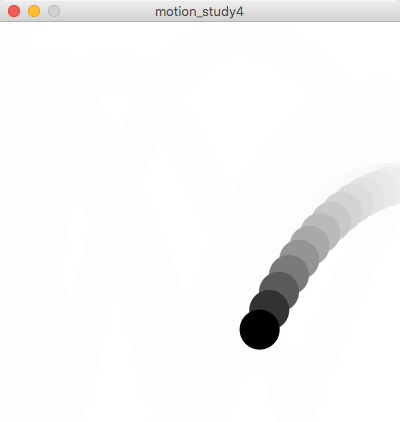 オブジェクトの運動は、2次元座標の場合はx座標とy座標を連続的に変化させることによって実現します。座標の変化が一定の場合は単調な動きになりますが、複雑な数式を用いなくてもif文などを上手く応用すると複雑な運動が可能になります。このスタディでは、試行錯誤によってアルゴリズムによる運動にどのようなバリエーションを作ることができるかを検証します。